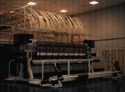The machine can support up to six colors per needle, which are electro- mechanically selected and placed into position within the machine's needle configuration. It is then injected into a primary backing utilizing Tapistron's proprietary touch-screen control software. With only 552 ends, there is less down-time on creeling, making it easier to undertake short production runs.